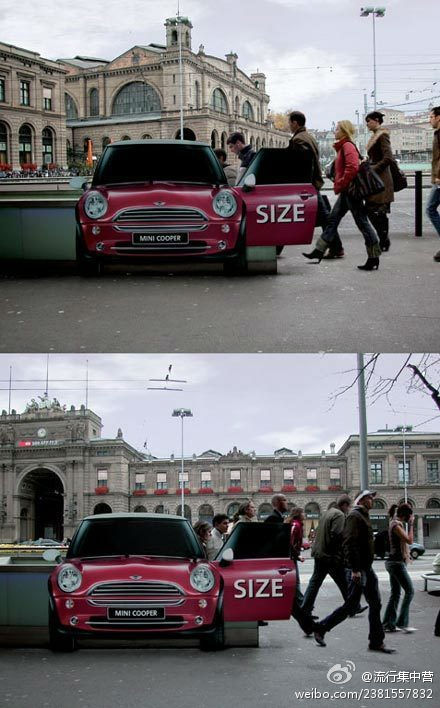 前段时间mini cooper在瑞士地铁站入口设了一个广告,同样也是巧妙阐述车内空间很大。武汉广告公司,武汉广告设计公司,武汉企业画册设计公司