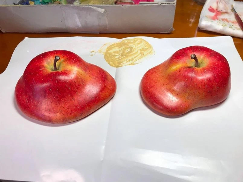 是真实的苹果还是木雕作品。